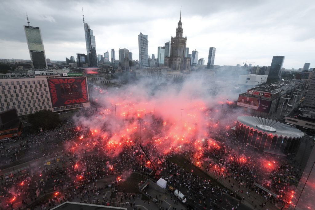 Marsz Powstania Warszawskiego 2023 w godzinę “W” na rondzie Dmowskiego w Warszawie.