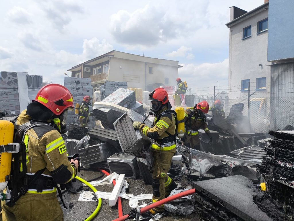 Zgłoszenie o pożarze wpłynęło do stanowiska kierowania Państwowej Straży Pożarnej w Tarnowie tuż przed godziną 12:30. Po przybyciu na miejsce pierwszych zastępów okazało się, że ogień objął składowane na placu budowlanym materiały izolacyjne, w tym styropian, które spalały się, wydzielając czarny, duszący dym.
