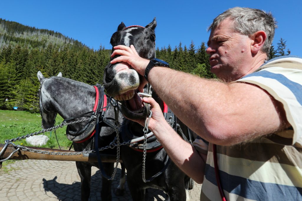 “Badane są podstawowe parametry. Przed ruszeniem w trasę konie przechodzą badania kopyt, stawów i nóg. Na górze z kolei badane jest ich tętno, odwodnienie i mierzona jest liczba oddechów. Te badania decydują o kontynuacji lub dopuszczeniu do pracy koni na tej górskiej trasie. Kondycja koni pracujących na trasie do Morskiego Oka jest bardzo dobra. Sami wozacy dbają o dobrostan swoich koni” – powiedział dr Tischner.