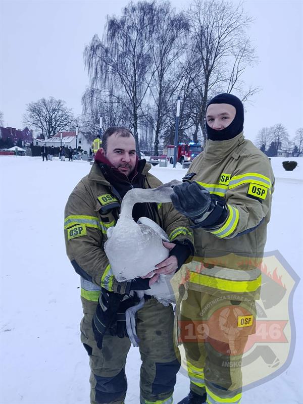 Zaniepokojeni świadkowie natychmiast powiadomili strażaków z Ochotniczej Straży Pożarnej w Ińsku. Po przybyciu na miejsce ratownicy stwierdzili, że łabędź przymarzł do lodu i potrzebuje natychmiastowej interwencji.