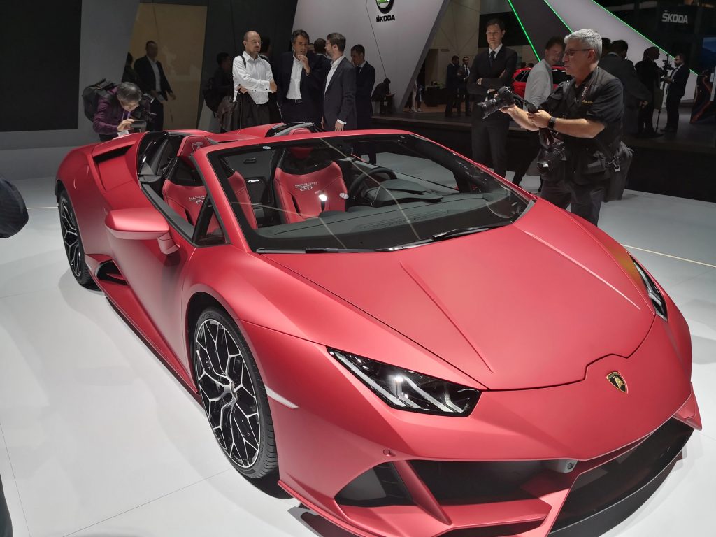 Na zdjęciu Lamborghini Huracán Evo prezentowane na targach we Frankfurcie.