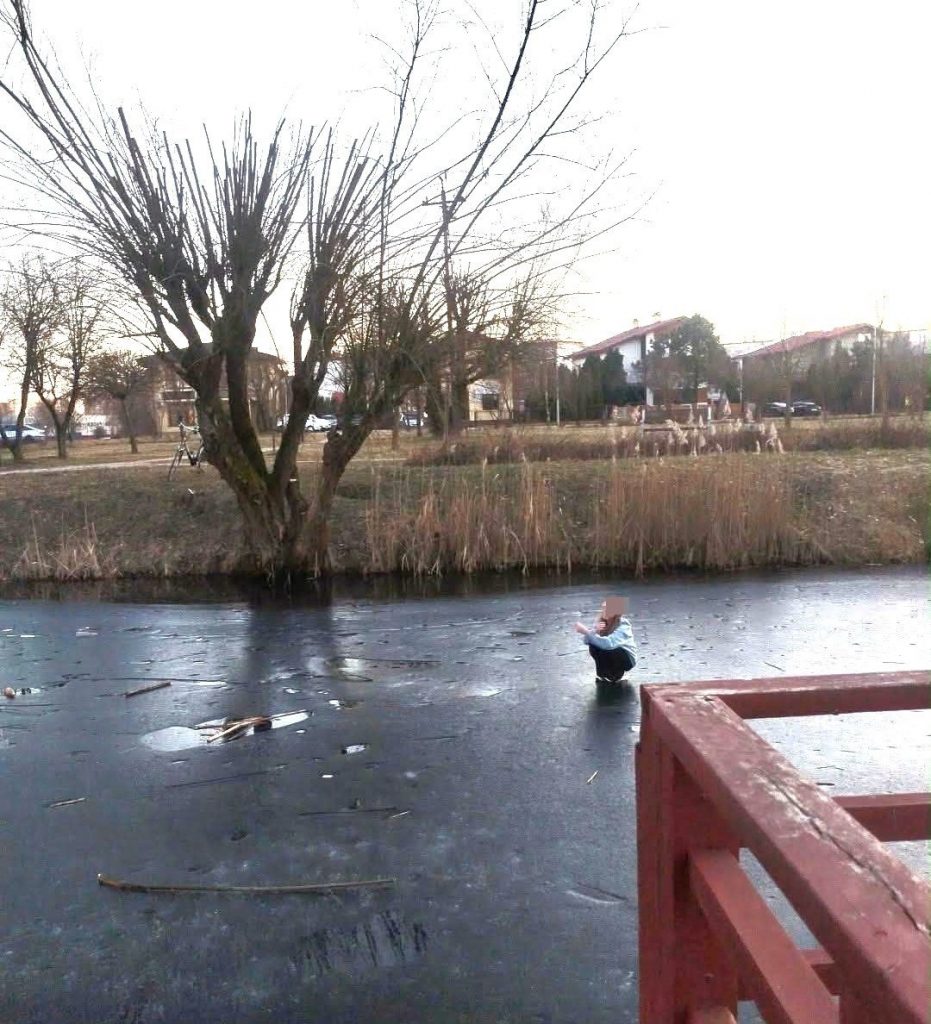 Na szczęście dziewczynka usiadła na lodzie, który pod jej ciężarem się nie załamał.