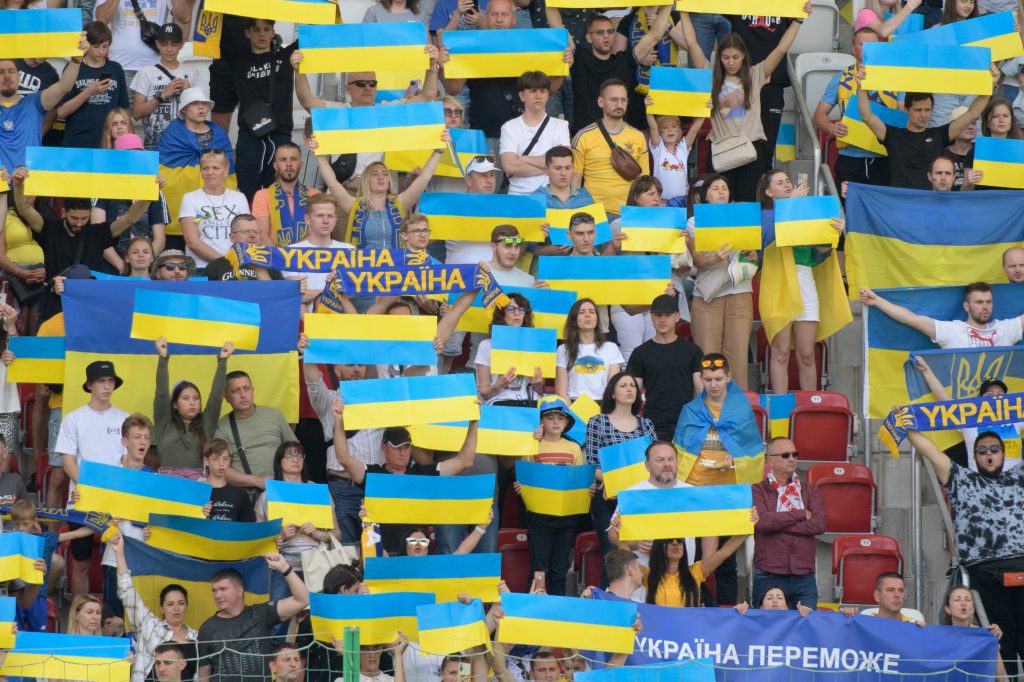 Kibice reprezentacji Ukrainy podczas meczu Ligi Narodów z Armenią w Łodzi.