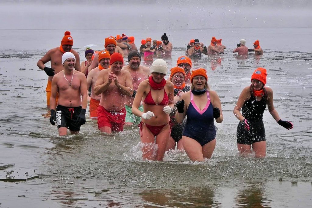Weekendowe spotkanie nad jeziorem przebiegało przy pierwszym poważniejszym mrozie tej jesieni. Drzewa zasnute były grubą warstwą szadzi, a taflę wody pokrywał cienki, dopiero co utworzony lód. Mimo to uczestnicy nie mieli wątpliwości, że zaplanowana kąpiel odbędzie się bez zmian. Najbardziej doświadczeni morsowie szybko skruszyli lód i przygotowali bezpieczne zejście do jeziora. Po krótkiej rozgrzewce cała grupa zanurzyła się w zimnej wodzie, symbolicznie otwierając nowy sezon ekstremalnych kąpieli.