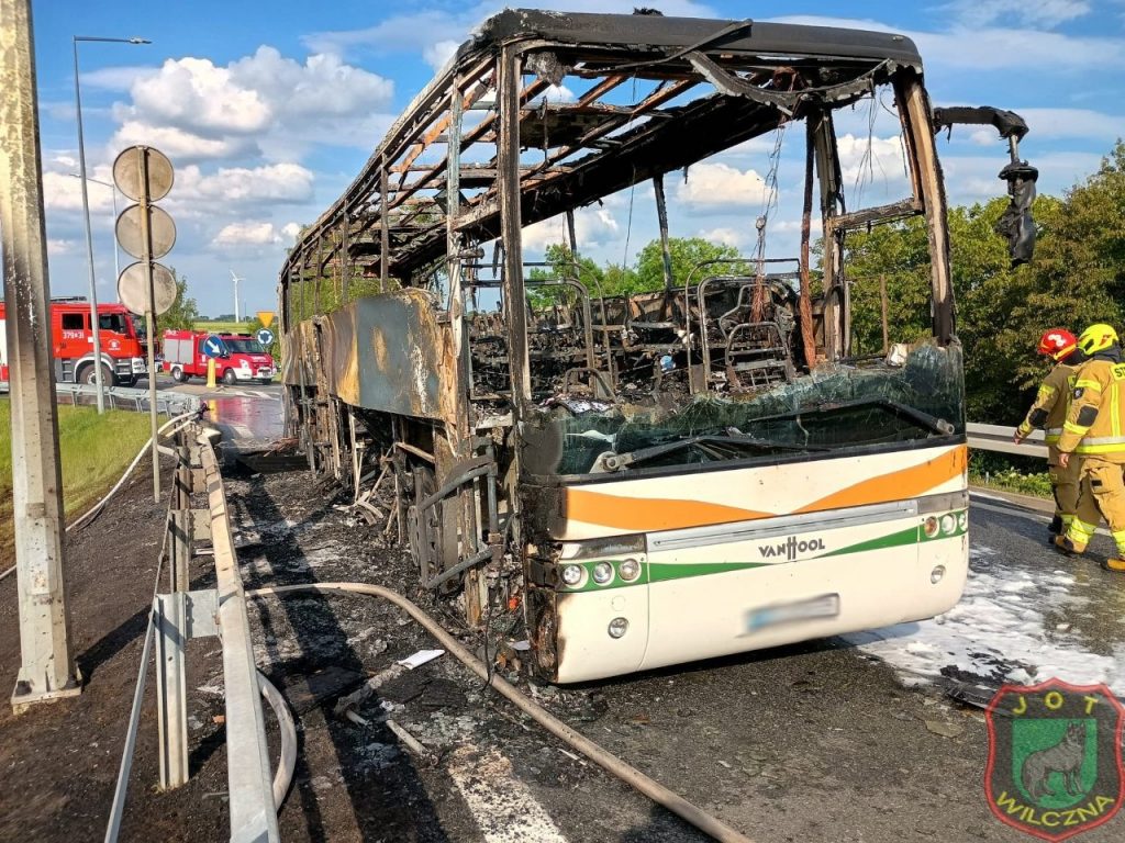 Autokar stanął w ogniu i doszczętnie spłonął. Ochotnicze Straże Pożarne opublikowały zdjęcia z akcji ratunkowej na wiadukcie nad autostradą A2 w miejscowości Sługocin koło Słupcy, gdzie zapalił się autokar kursowy. Na szczęście żadna z ponad 20 osób znajdujących się na pokładzie nie odniosła obrażeń.