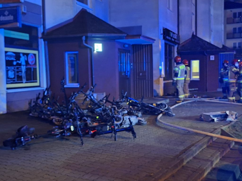 W niedzielny wieczór (16 marca), tuż przed godziną 21, strażacy zostali wezwani do pożaru serwisu hulajnóg elektrycznych przy ul. Gackowskiego w Bydgoszczy. W wyniku zdarzenia jedna osoba trafiła do szpitala.