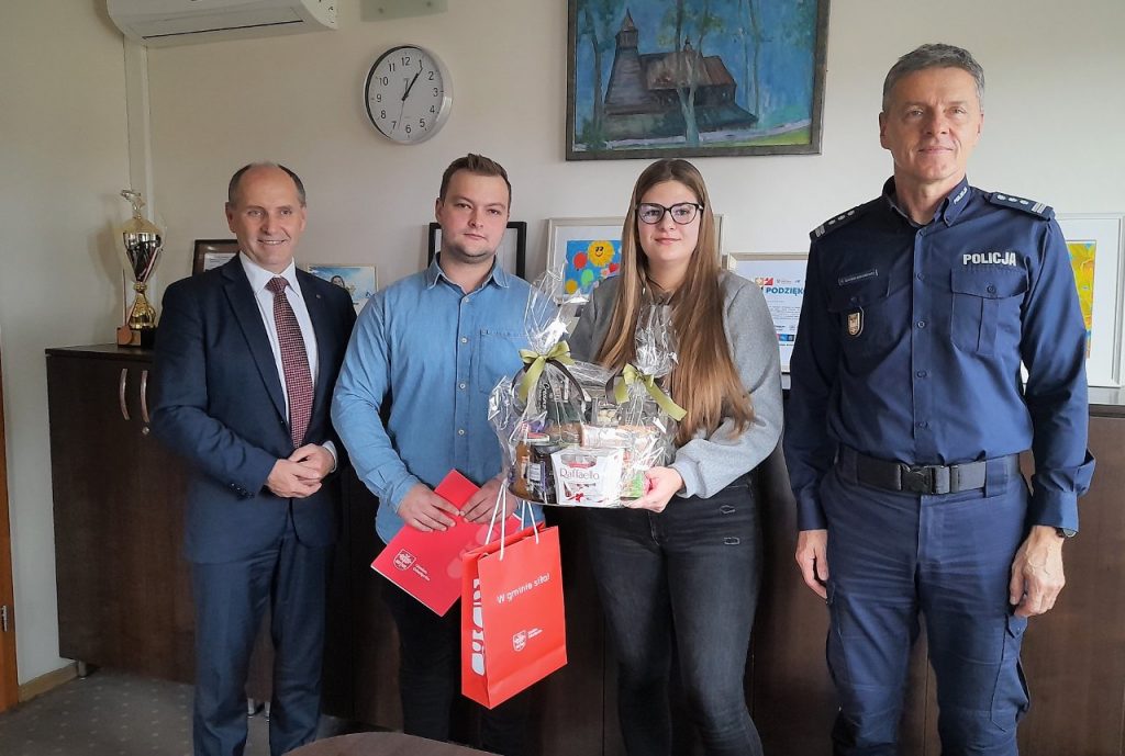 30 października Komendant Powiatowy Policji w Oświęcimiu insp. Piotr Dziekanowski oraz wójt gminy Mirosław Smolarek wręczyli Łukaszowi Spyrce oficjalne podziękowania za zdecydowaną i odważną postawę. Wacław, który również brał udział w akcji, otrzyma upominki i gratulacje w późniejszym terminie.