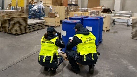W trakcie kontroli odkryto pięć dużych beczek ważących łącznie tonę. Znajdował się w nich GBL, oznaczony etykietami z informacją o kraju pochodzenia, masie, dacie produkcji oraz planowanej trasie przewozu.