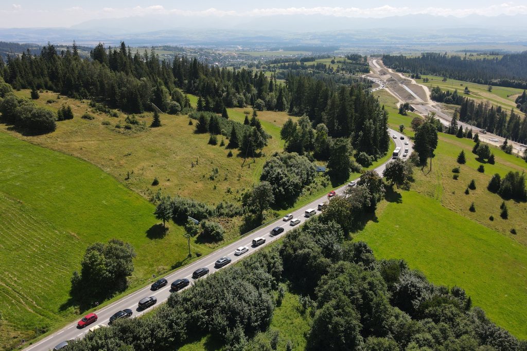 Ruch samochodowy na Zakopiance w okolicach miejscowości Rdzawka.