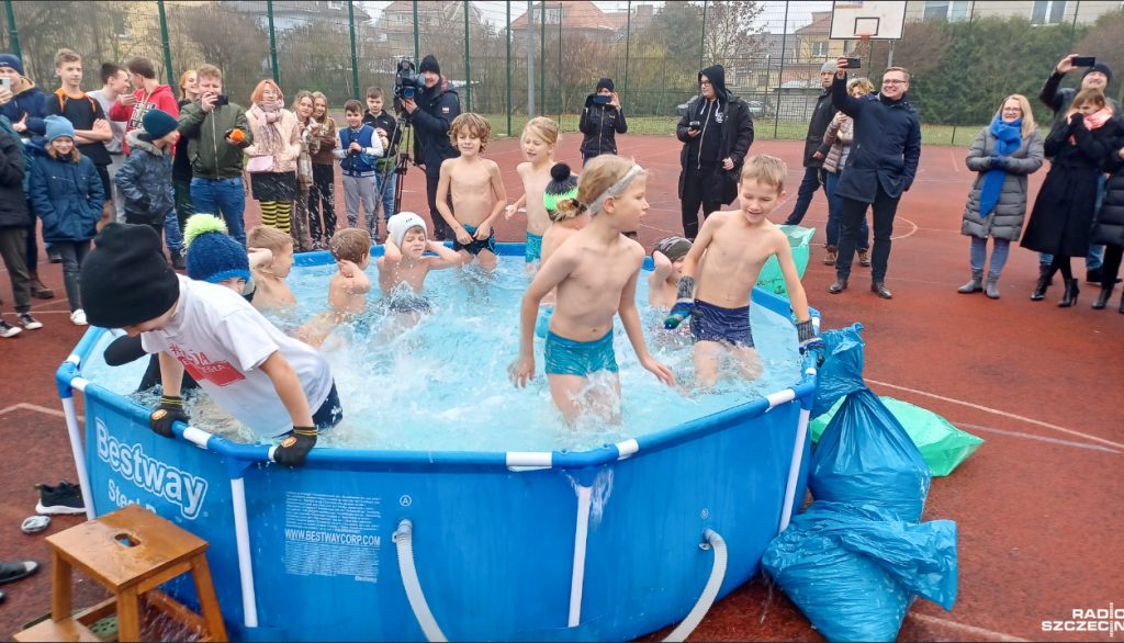 Na boisku Szkoły Podstawowej nr 8 im. Młodych Europejczyków w Szczecinie ustawiono ogrodowy basen napełniony wodą. Chętni uczniowie, za zgodą rodziców, mogli spróbować swoich sił i w ten sposób uczcić Międzynarodowy Dzień Morsów. Zgłosiło się ponad 70 osób.