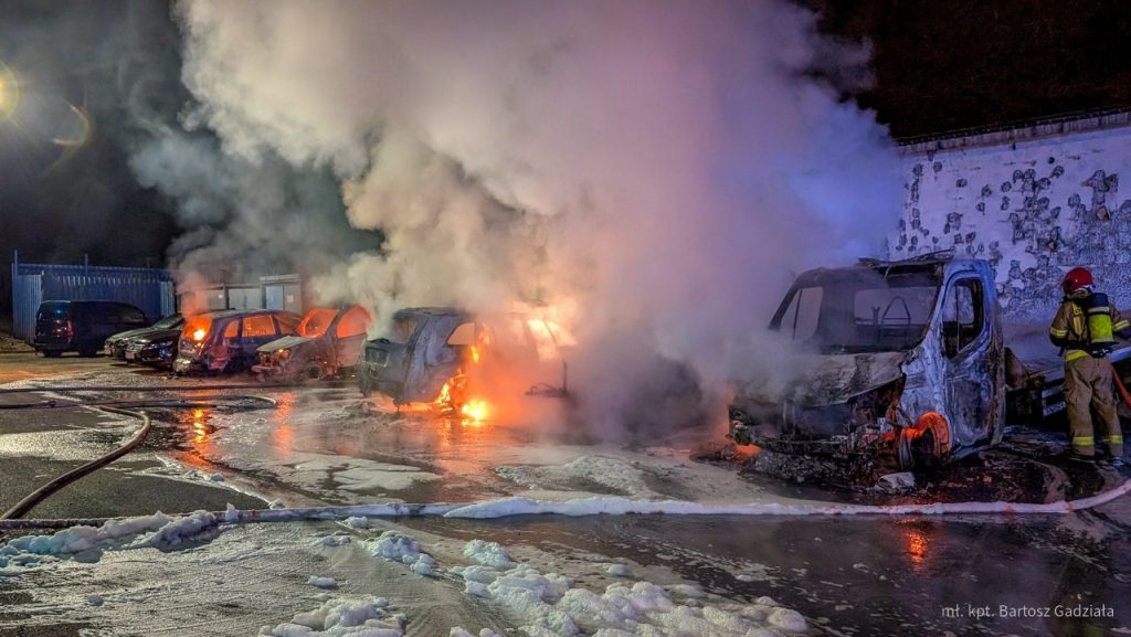 W nocy z piątku na sobotę, około godziny 1:20, na terenie kompleksu handlowo-usługowego przy alei Roździeńskiego w Katowicach wybuchł pożar. Ogień objął łącznie 12 pojazdów. Na miejscu przez blisko dwie godziny działało pięć zastępów straży pożarnej. Nikt nie odniósł obrażeń.