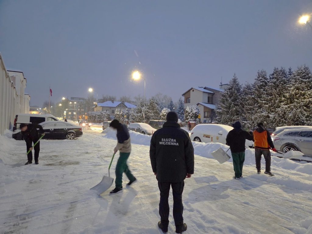 Jak poinformowała administracja Zakładu Karnego w Zamościu, ze względu na trudne warunki pogodowe grupa osadzonych została skierowana do odśnieżania terenów wokół więzienia. Oczyszczali oni chodniki, parkingi oraz zatoki postojowe w bezpośrednim sąsiedztwie jednostki.