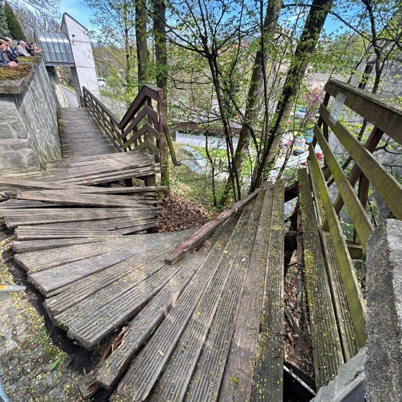 Na miejscu pracował także inspektor nadzoru budowlanego, który ma zdecydować o dalszych losach uszkodzonej konstrukcji. Teren został zabezpieczony, a dostęp do schodów zamknięty. Władze miasta apelują, by korzystać z windy oraz głównego wejścia na teren wzgórza.