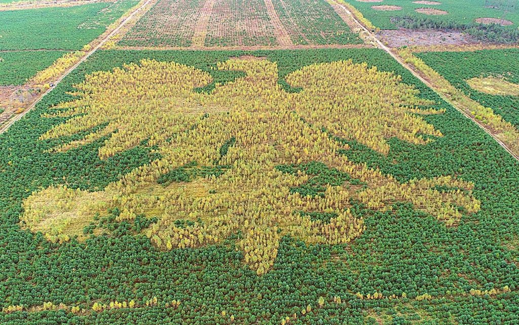 Efekt? Największy leśny wzór w Polsce, który z wysokości wygląda jak namalowany pędzlem przyrody.
