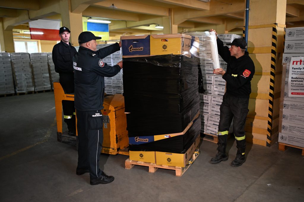Akcja “Paczka dla Ukrainy” w Leżajsku. Akcja jest formą celowego wsparcia ukraińskich rodzin w czasie trwającej wojny i jest realizowana przez Krajową Administrację Skarbową oraz Caritas Archidiecezji Przemyskiej.