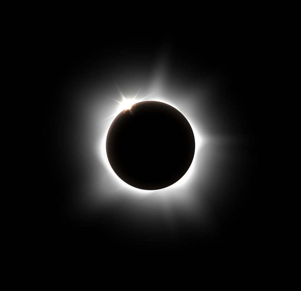 - całkowite – Słońce zostaje całkowicie przesłonięte przez Księżyc,